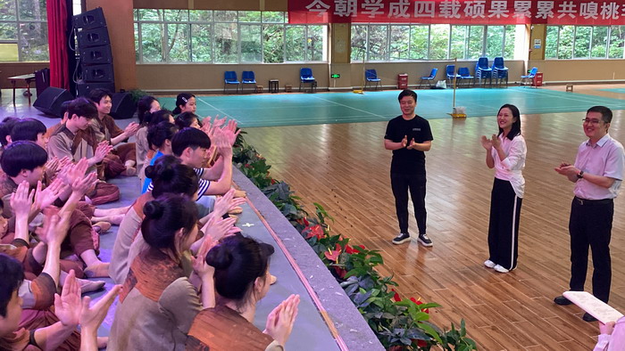 自四月底教育部公布入选全国第七届大学生艺术展演名单后,参赛师生们以高度的专业荣誉感和舞台追求,利用周末和节假日紧锣密鼓地打磨提升作品质量,始终坚守排练厅,克服困难、积极备赛,展现出了咬定青山不放松,立根原在破岩中青春力量。
