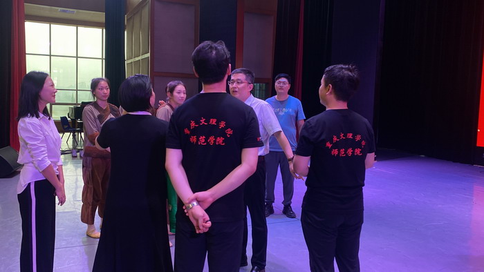 6月11日下午,学校党委常委、副校长陈中祝深入师范学院指导全国第七届大学生艺术展演参展准备工作,慰问即将赴湖北襄阳参加展演的师生团队。师范学院党委书记杨桦、副院长黎丙松,校团委相关同志陪同。